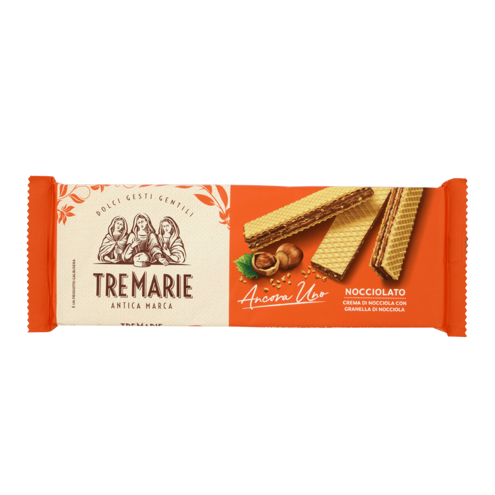 Savybės: Kremas ir itališkų lazdyno riešutų trupiniai. Vafliniai sausainiai su lazdyno riešutų kremu ir trupiniais (kremas: 85 %). Linija: Ancora Uno. Traškūs vafliai susilieja su puikiu itališkų lazdyno riešutų kremu, papuoštu traškiais trupiniais.