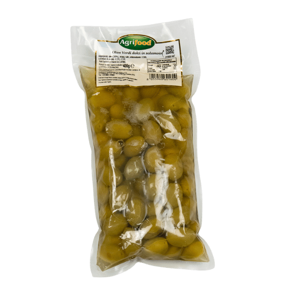 Produkto pavadinimas: Olive “Verdi dolci” in salamoia Saldžios žalios alyvuogės sūryme. 675g – grynasis kiekis 400g