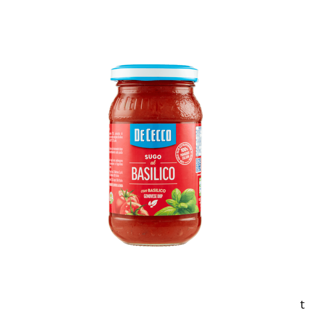 Produkto aprašymas: Autentiškas italų pomidorų padažas su Genujos baziliku DOP pagamintas pagal tradicinį receptą. Su 100% itališkais pomidorais ir tik ekstra tyru alyvuogių aliejumi. Be konservantų, dažiklių ir priedų. Klasikinis padažas makaronams.